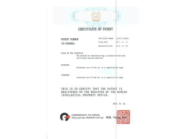 韓國發明專利證書10-1350645